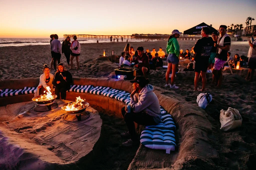 While the beach is our home base, we’re built to bring the fire anywhere you’re hosting. From backyard movie nights and pool parties to corporate rooftops and music festivals, we can build you an "above-ground" experience—meaning we bring the lounge seating, smokeless fire rings, and premium add-ons to any flat surface, no sand required.